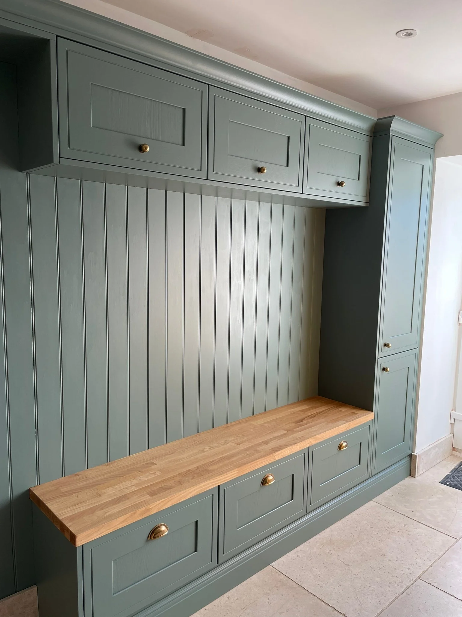 2022 saw an abundance in the demand for boot rooms that provide both practical storage and seating. Our returning clients Mark & Cassie knew we could come up for a solution perfect for their busy family and dogs.