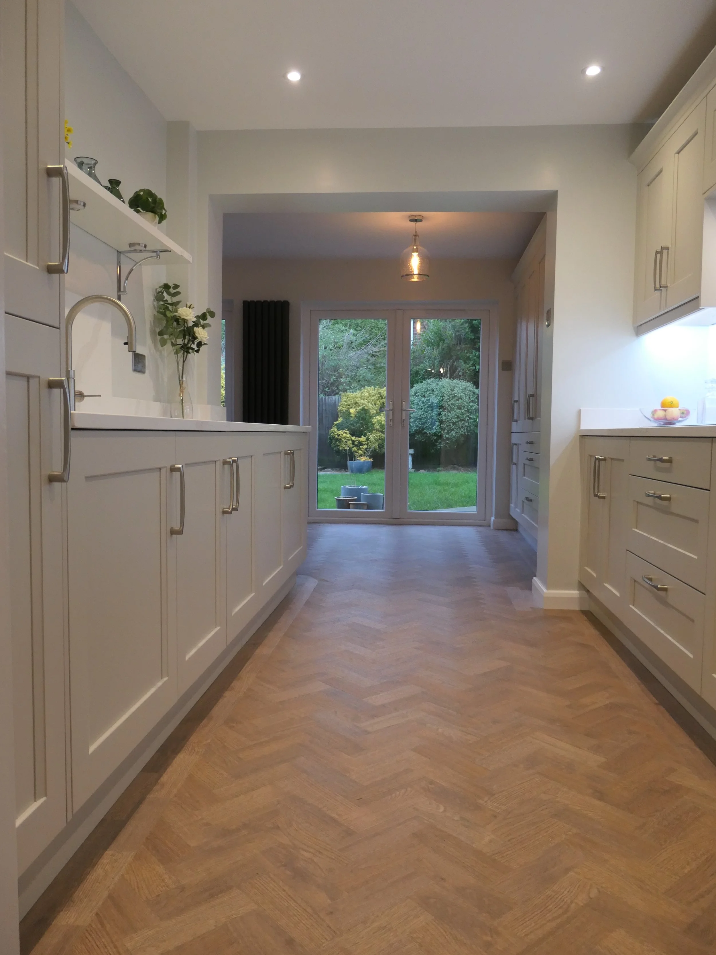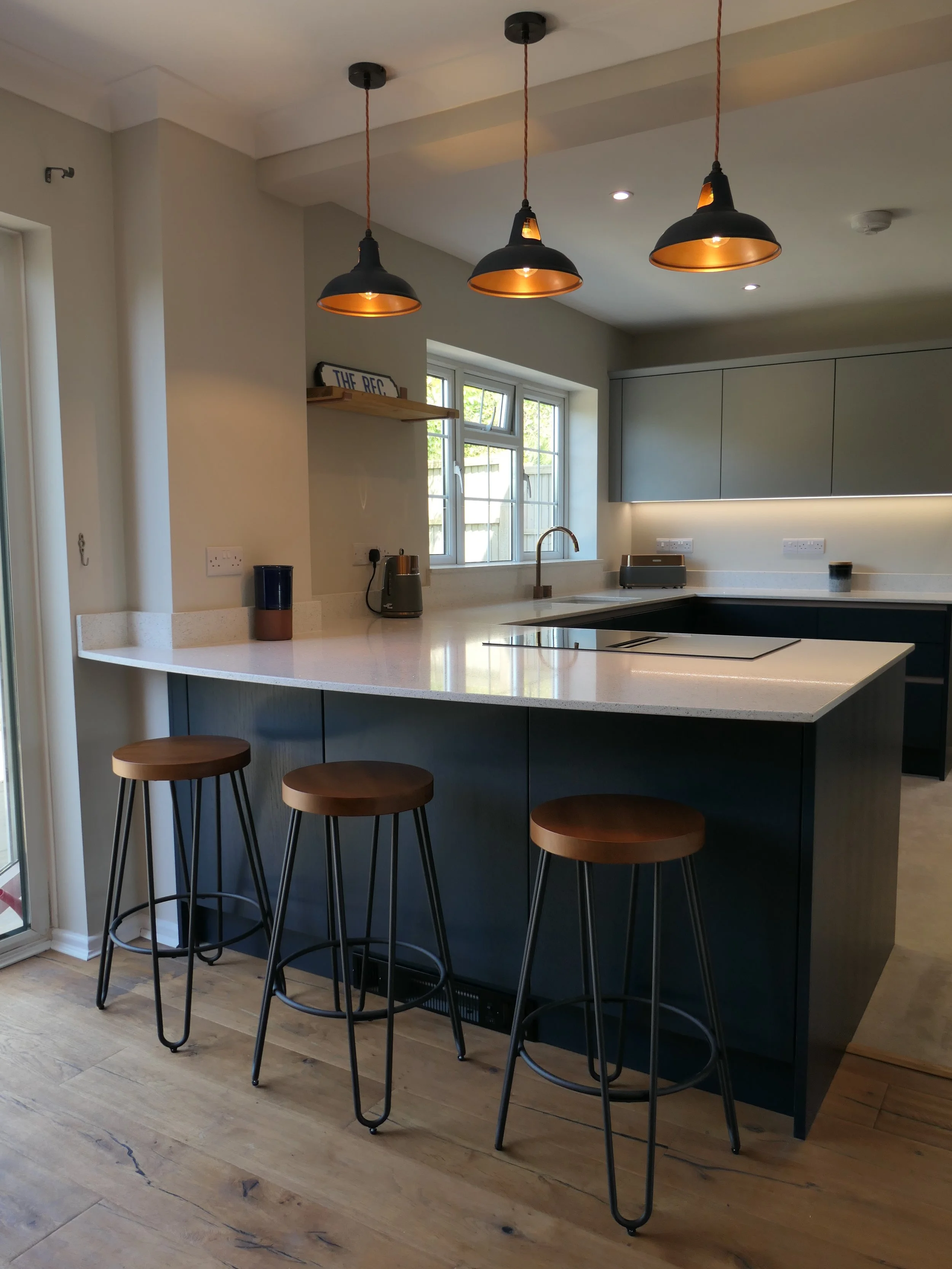 We worked closely with our clients to design and install a galley kitchen that connects with a rear extension that they had a few years prior. Worktop space and tall storage was essential in this project.